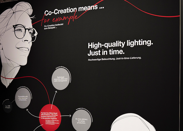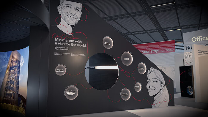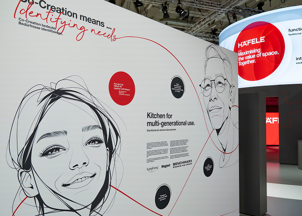 Stilisierte Porträts, individualisierende Handschrift-Elemente und filmische Teaser verbinden die Co-Engineering/Co-Creation-Projekte auf dem Messestand.
