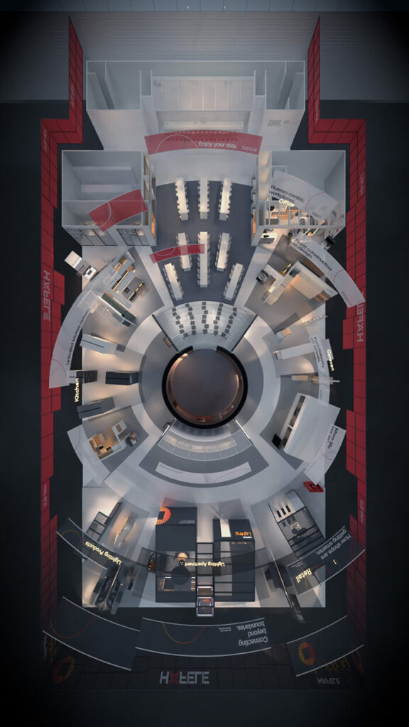 „Maximising the value of space. Together.“ als räumliche und multimediale Inszenierung.